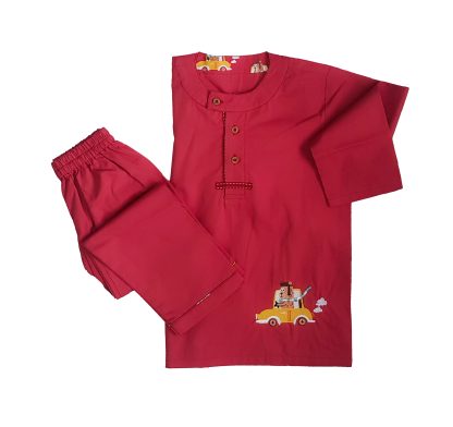 Loungewear – Bear Drive – Flat Collar – Red (Plain Bottom & Tom with Embroidery)